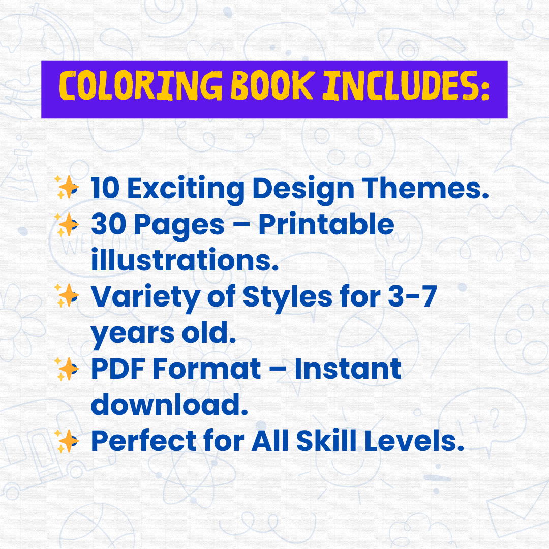 Let your child’s creativity shine with this Fun & Printable Coloring Book for Kids (Ages 3-7)! 🎨✨ Filled with adorable illustrations, this coloring book is perfect for toddlers and preschoolers to enjoy hours of fun while improving their fine motor skills and creativity.